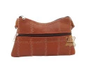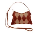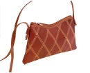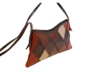 Bolsa feita com retalhos de couro costurados. Possui ótima qualidade e grande durabilidade. Fechos na lateral e no centro, e com alça comprida. comprimento: 22cm largura: 14cm .
