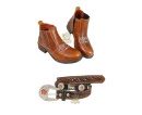 Kit acompanha um lindo cinto, todo trabalhado com broches do Mangalarga e uma linda bota toda em couro.